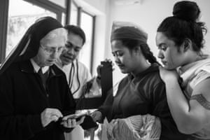 Em 2015, Eu comecei o que era para se tornar um projeto a longo prazo, explorando a vida das freiras nos Santos Corações de Jesus e de Maria convento em Roma., Meu interesse foi focado em histórias de pessoas que vivem vidas “radicais”, aqueles que decidem existir fora dos modos de vida padrão e fazer escolhas que influenciam todo o seu modo de ser. Eu caminhava muitas vezes por Roma, minha cidade natal, e via freiras percorrendo suas vidas diárias. Apesar de serem uma visão comum na cidade, a sua existência dentro das paredes do Convento tinha permanecido relativamente obscurecida do ponto de vista público. O que implica exactamente a vida de uma freira? E como é a vida dentro da Comunidade deles?, Com mais de 750 instituições religiosas femininas sediadas na cidade, Roma foi o local ideal para encontrar respostas a essas perguntas.,uns e noviços relembre a Paixão de Cristo; à direita: depois de mais de 20 anos de trabalho como uma freira, principalmente, em Bogotá, Irmã Marta está agora a ser enviado para a Albânia
